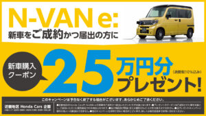 N-VAN e: ご成約&届出で新車クーポン25万円分プレゼント