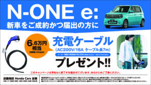 N-ONE e: 新車ご成約&届出で 充電ケーブルプレゼント!
